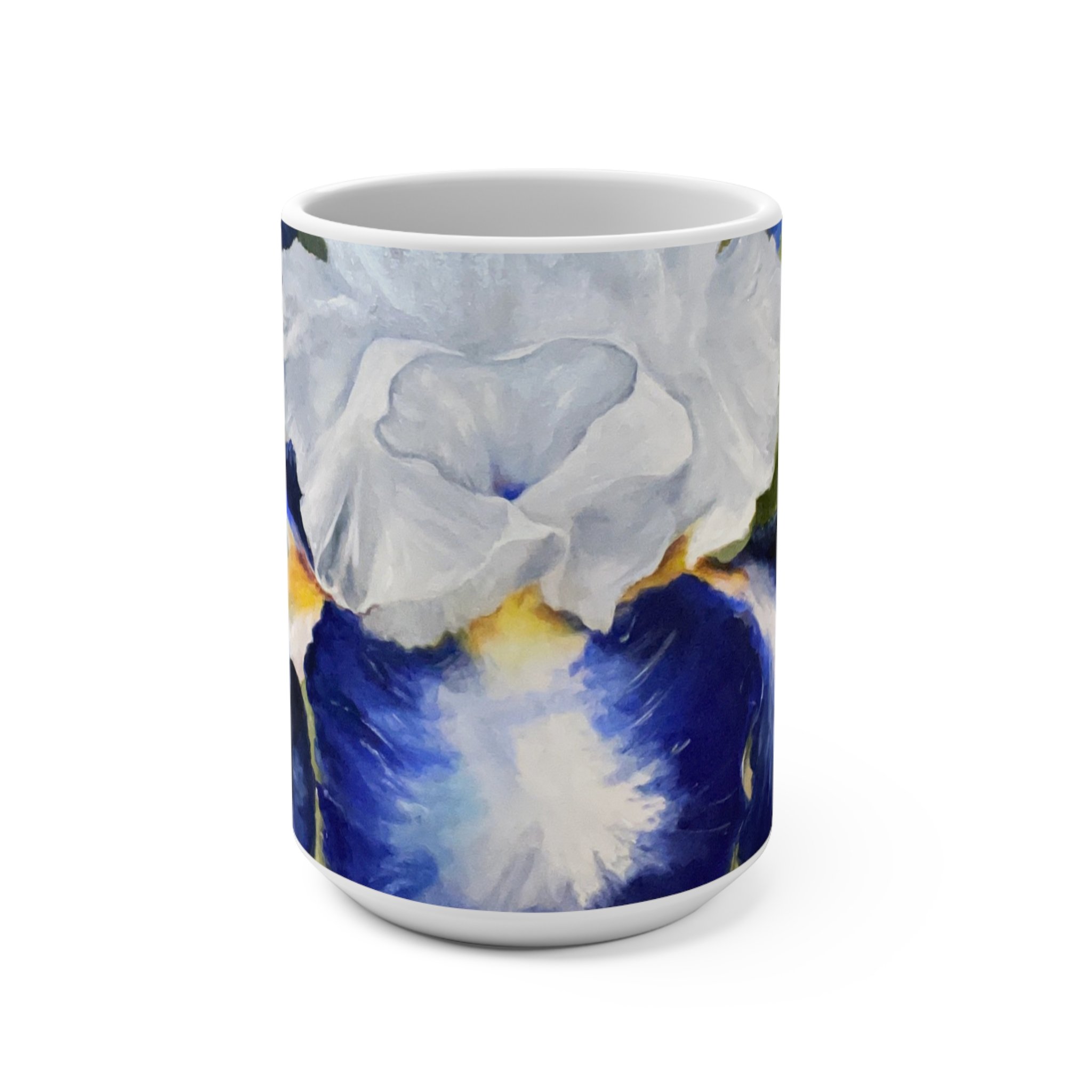 Warm-up with a nice cuppa out of this customized ceramic coffee mug. Printed with my painting of irises, it will add a touch of spring to your morning routine. It’s BPA and Lead-free, microwave & dishwasher-safe, and made of white, durable ceramic in a 15-ounce size. There's never too much coffee! A big size (15oz) white, durable ceramic mug. High quality sublimation printing makes it an appreciated gift to every true coffee or tea lover, who always asks for a refill.